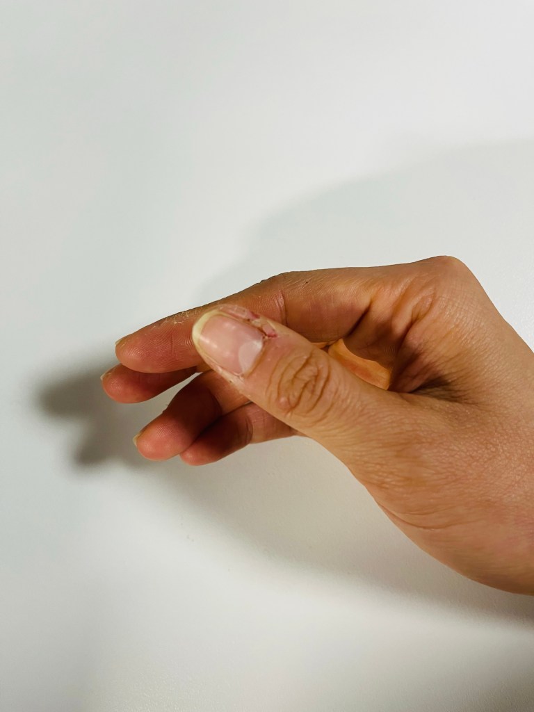 私の仕事は洗い物をすることが多くて、ネジを仮止めするのに親指と人差し指をたくさん使うから、この季節はどうしても手が荒れてしまう。労働した証?