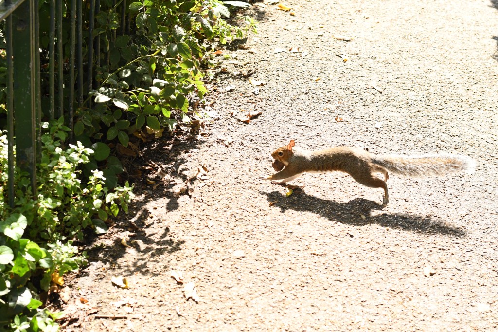 駆け抜けるリスを見つけて 一つ前のカメラの設定がこれだったから 急いでシャッターボタンを押したら明るすぎてしまった写真 いつも遅いんだ